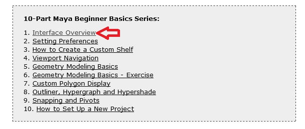 Structure: the training is divided into 20 sections; each section is divided into lessons that cover certain topics in Autodesk Maya. As stated previously this outlet has text only tutorials.